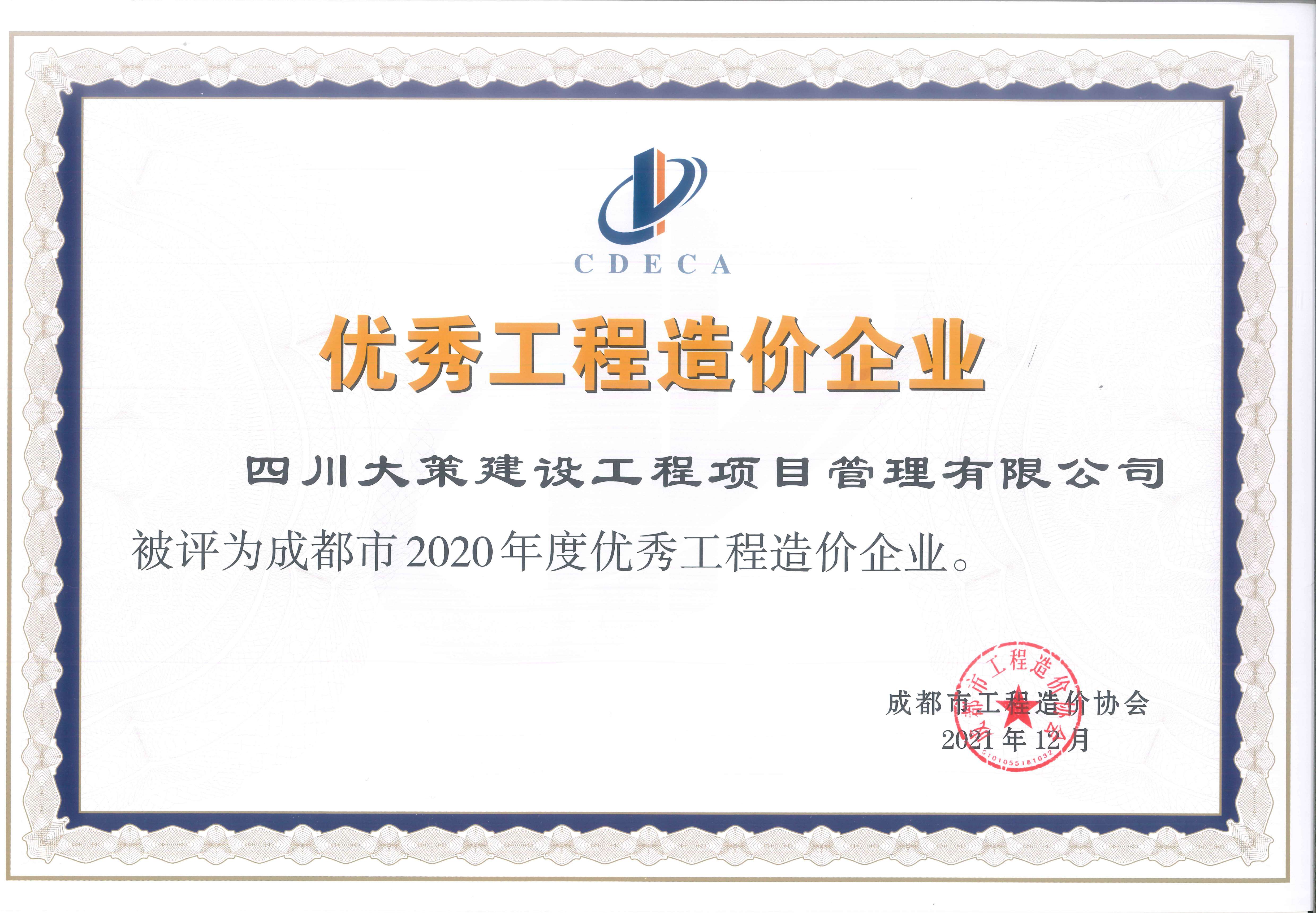 - 2020年度優(yōu)秀工程造價(jià)咨詢企業(yè)